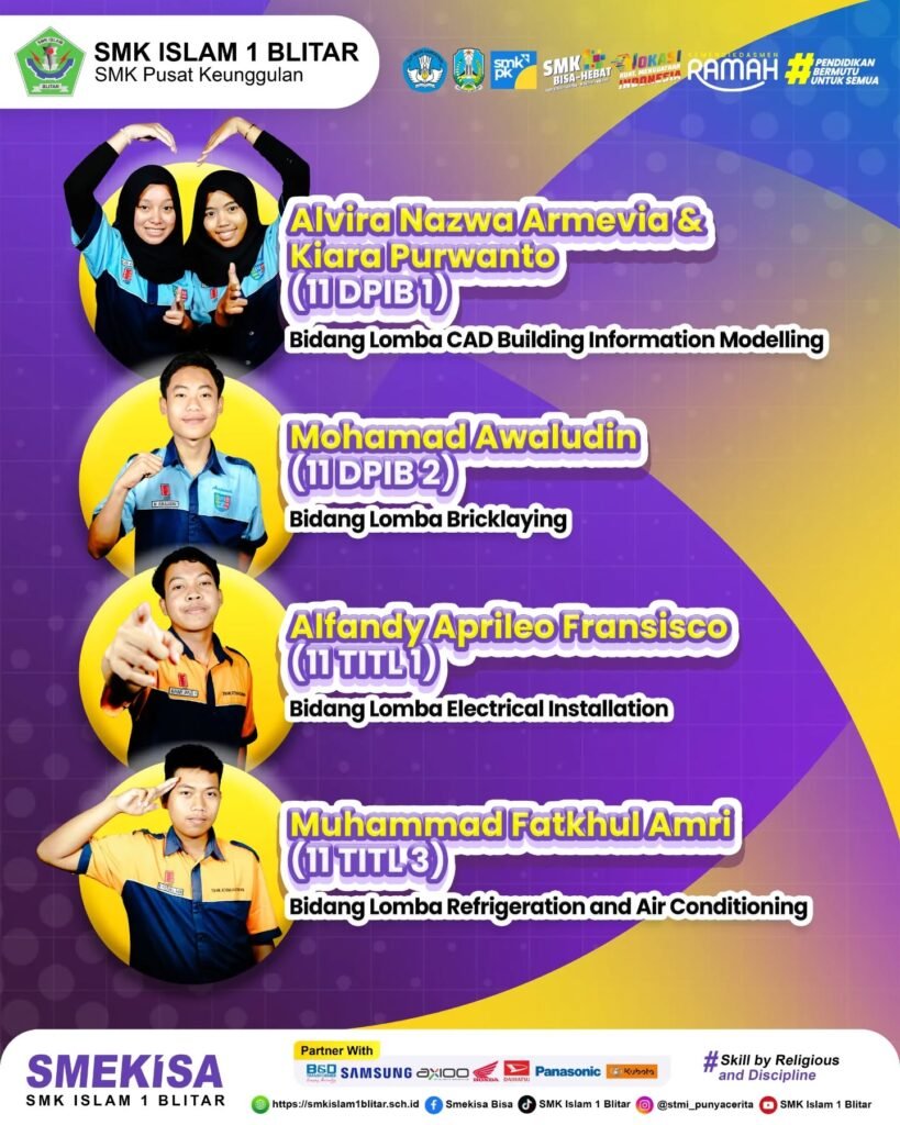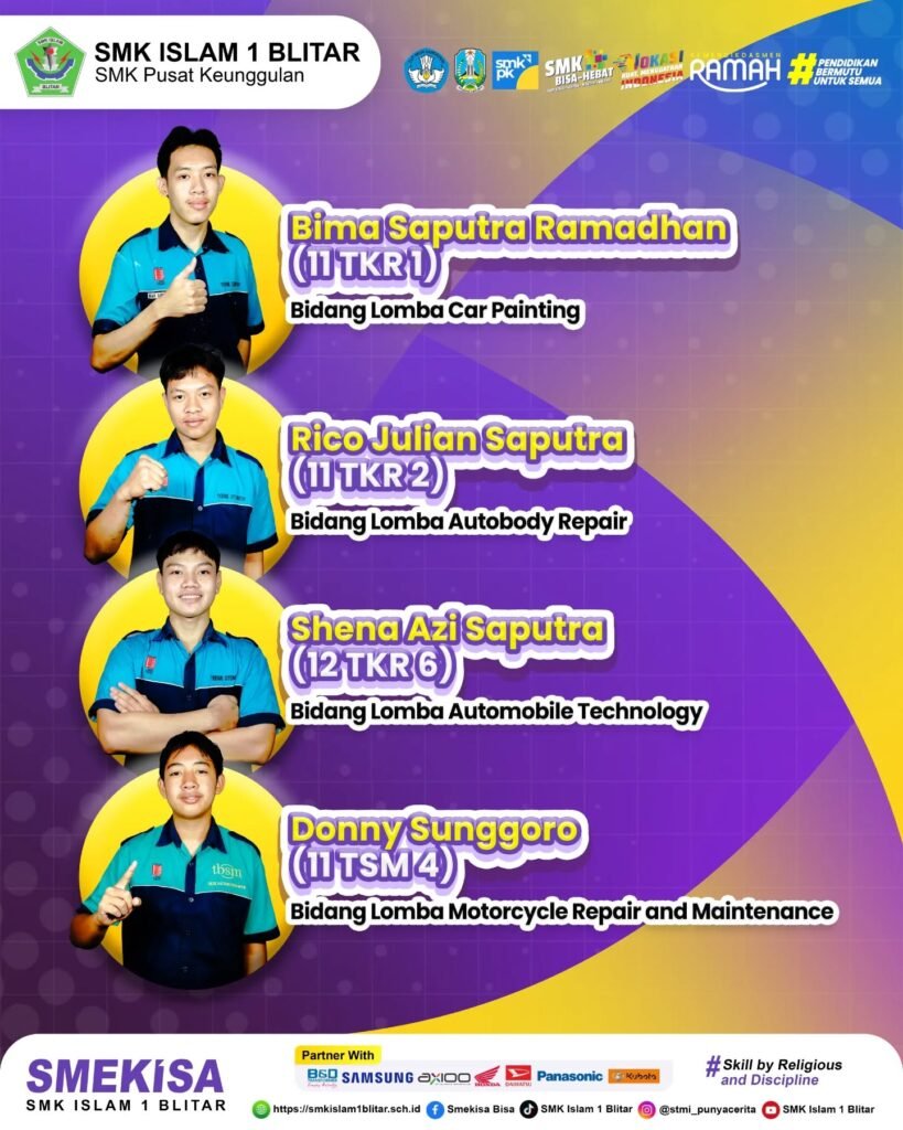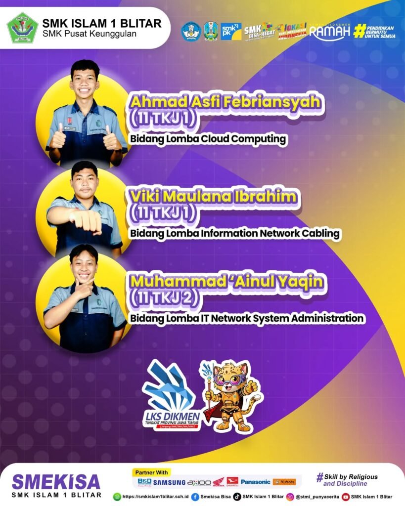 Tetap percaya diri! Tampilkan yang terbaik, jaga semangat sportivitas, dan tunjukkan bahwa siswa SMK Islam 1 Blitar mampu bersaing di tingkat provinsi. Semoga kalian berhasil membawa pulang prestasi membanggakan, sekaligus menjadi inspirasi bagi generasi selanjutnya untuk terus berprestasi dan berkarya.