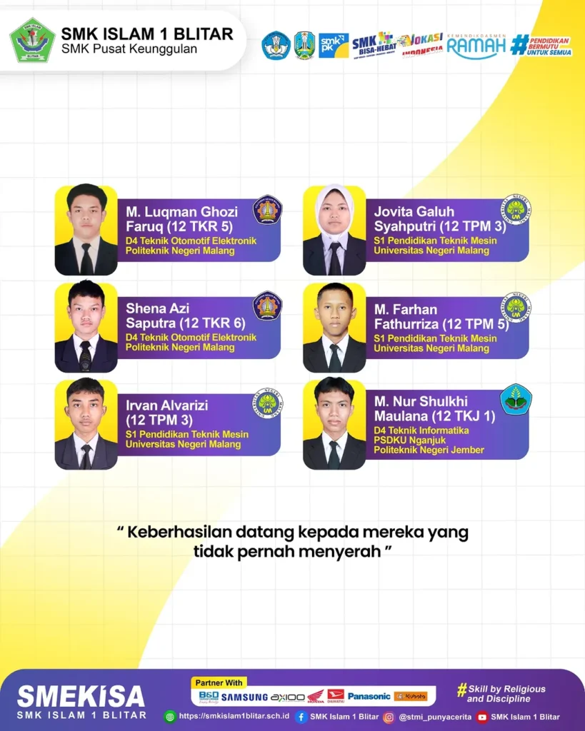 Mari terus saling mendukung dan mendoakan agar seluruh siswa SMK Islam 1 Blitar dapat meraih cita-citanya, apapun jalur yang mereka tempuh.