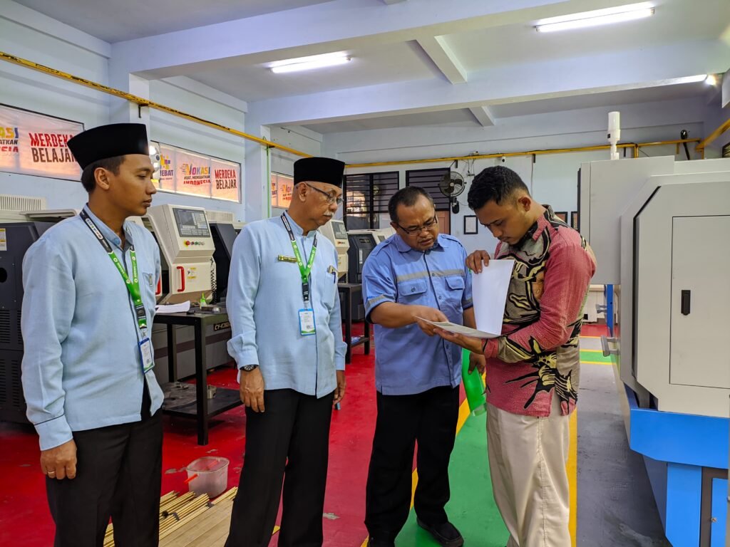 Agenda kedua adalah kunjungan Mario Andrianto ke bengkel praktik jurusan Teknik Pemesinan (TPM). Beliau mengamati secara langsung alat-alat praktikum yang digunakan untuk produksi produk Teaching Factory (TEFA). Jurusan TPM merupakan jurusan yang mengikuti program SMK PK Skema Pemadanan Dukungan (SPD). Kunjungan ini menjadi momen penting untuk mengevaluasi kesiapan fasilitas yang dimiliki sekolah dalam mendukung pembelajaran berbasis industri.