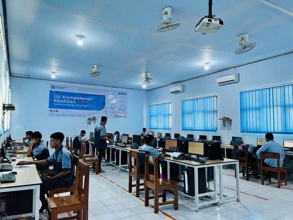 Blitar – Uji Kompetensi Keahlian (UKK) untuk jurusan Teknik Komputer dan Jaringan (TKJ) resmi dilaksanakan mulai tanggal 14 Februari hingga 25 Februari 2025. Kegiatan ini bertempat di Lab 1 TKJ, lantai 2, dengan penguji utama berasal dari Dunia Usaha dan Dunia Industri (DUDI), termasuk PT. Data Buana Nusantara, PT. Integrasi Data Nusantara, PT. AsNet Blitar, dan CV. Sakti Komputer.