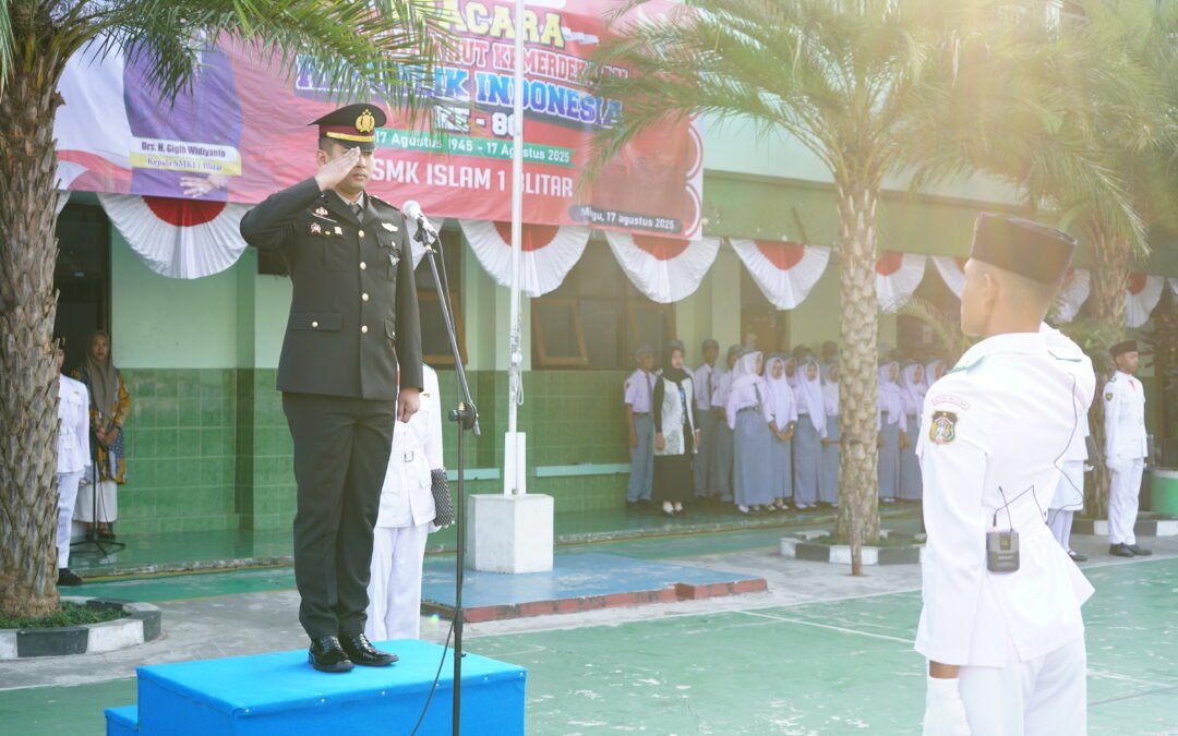 Blitar, 17 Agustus 2025 – SMK Islam 1 Blitar menggelar upacara bendera dalam rangka memperingati Hari Ulang Tahun ke-80 Kemerdekaan Republik Indonesia pada Minggu (17/8). Dengan mengusung tema nasional “Bersatu Berdaulat, Rakyat Sejahtera, Indonesia Maju”, upacara dilaksanakan secara serentak di dua lokasi, yaitu Kampus 1 dan Kampus 2.