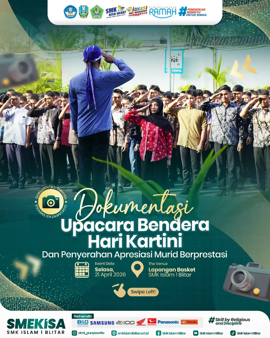 Blitar, 21 April 2026 — SMK Islam 1 Blitar (SMEKISA) menggelar upacara bendera dalam rangka memperingati Hari Kartini yang berlangsung khidmat di...