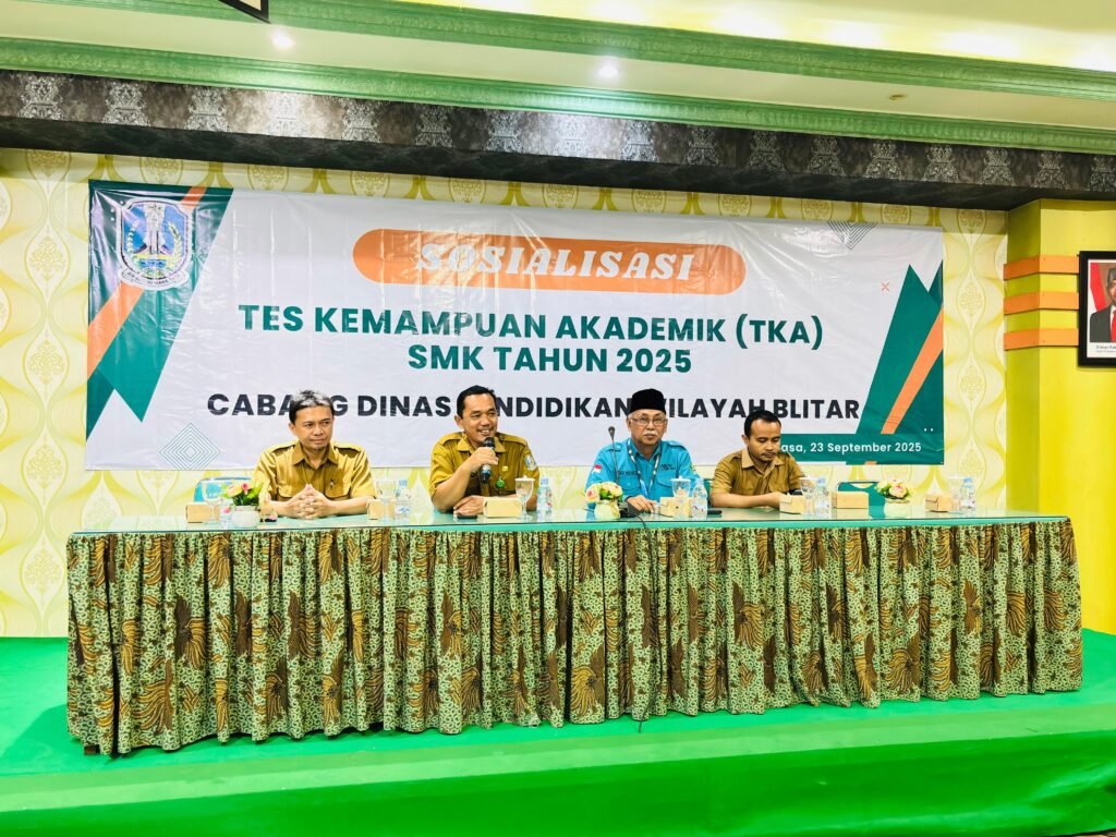 SMK Islam 1 Blitar (SMEKISA) menjadi tuan rumah kegiatan Sosialisasi Tes Kemampuan Akademik (TKA) SMK Tahun 2025 yang diselenggarakan oleh Cabang Dinas Pendidikan Wilayah Blitar pada Selasa, 23 September 2025. Acara yang dipusatkan di Aula Gedung A SMEKISA ini bertujuan memberikan pemahaman menyeluruh kepada sekolah-sekolah terkait pelaksanaan TKA sebagai salah satu bentuk asesmen akademik tingkat SMK.
