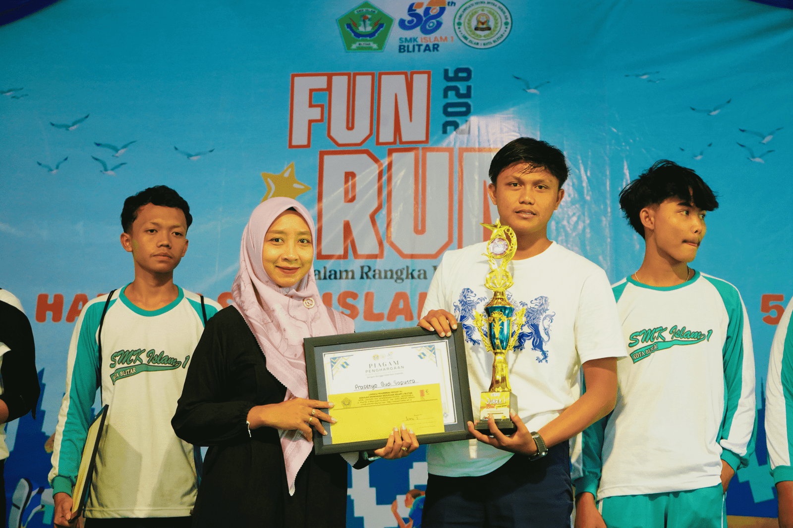 “Kegiatan fun run dan jalan sehat ini bukan sekadar olahraga, tetapi momentum untuk memperkuat kebersamaan, kekompakan, dan rasa syukur atas perjalanan panjang SMK Islam 1 Blitar hingga usia ke-58. Semoga semangat kebersamaan ini terus terjaga dan menjadi energi positif untuk melahirkan prestasi-prestasi ke depan,” ungkapnya.