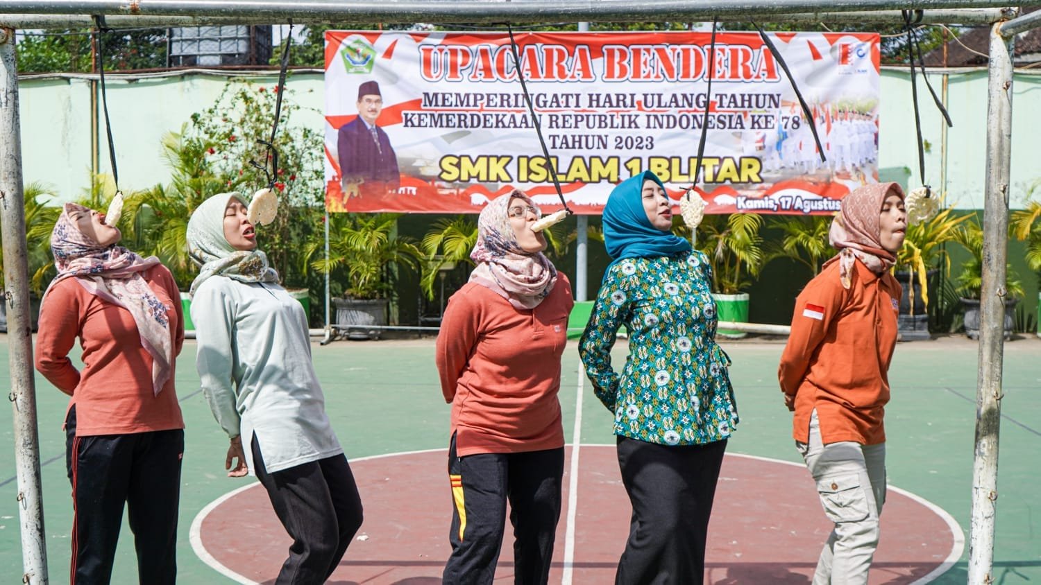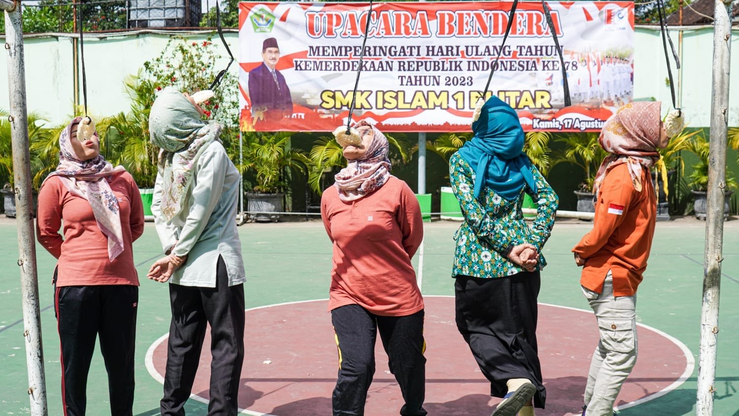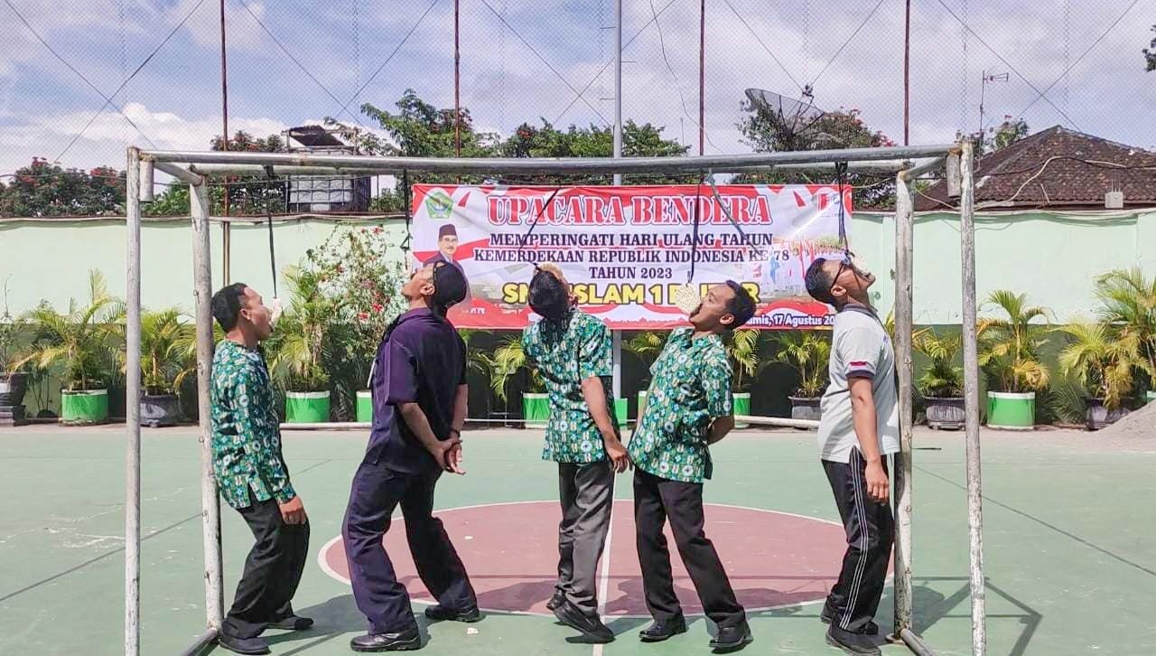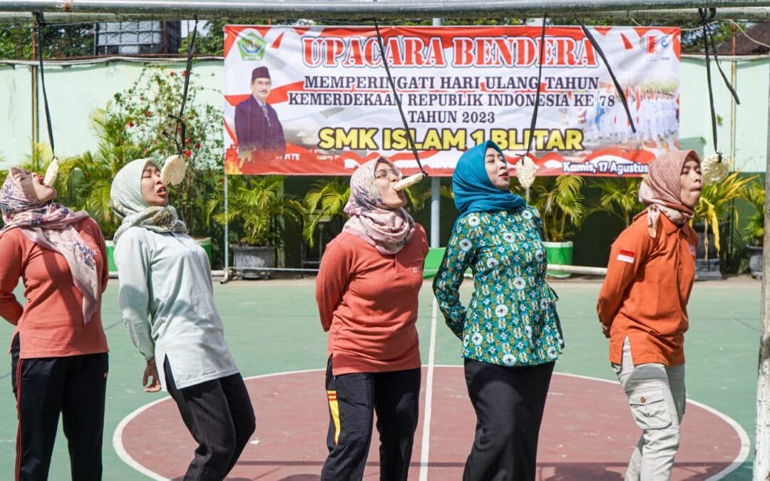 Blitar – Suasana ceria dan semangat kompetisi memenuhi halaman SMK Islam 1 Blitar saat lomba Bapak/Ibu Guru, Tata Usaha, dan Siswa-siswi digelar dalam rangka merayakan Hari Ulang Tahun (HUT) Republik Indonesia yang ke-78. Lomba-lomba tersebut berhasil mempererat tali persaudaraan serta menampilkan sisi kreativitas dan kebersamaan dalam komunitas sekolah. Kamis, 17/8/2023.