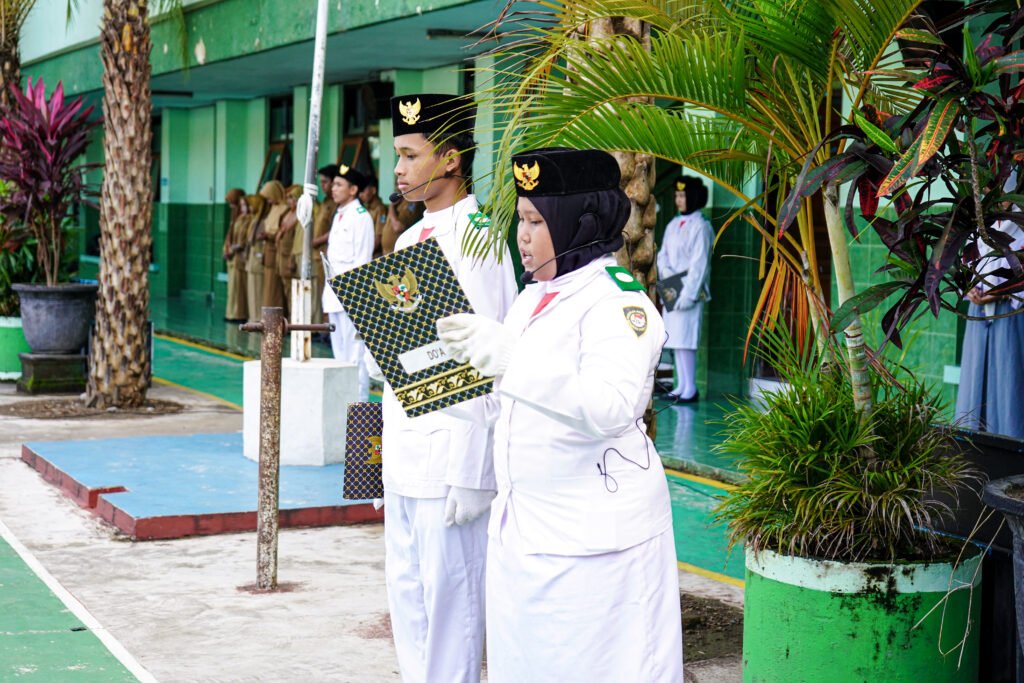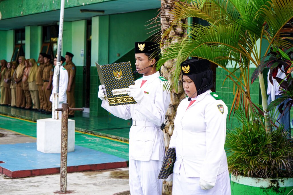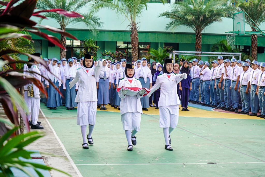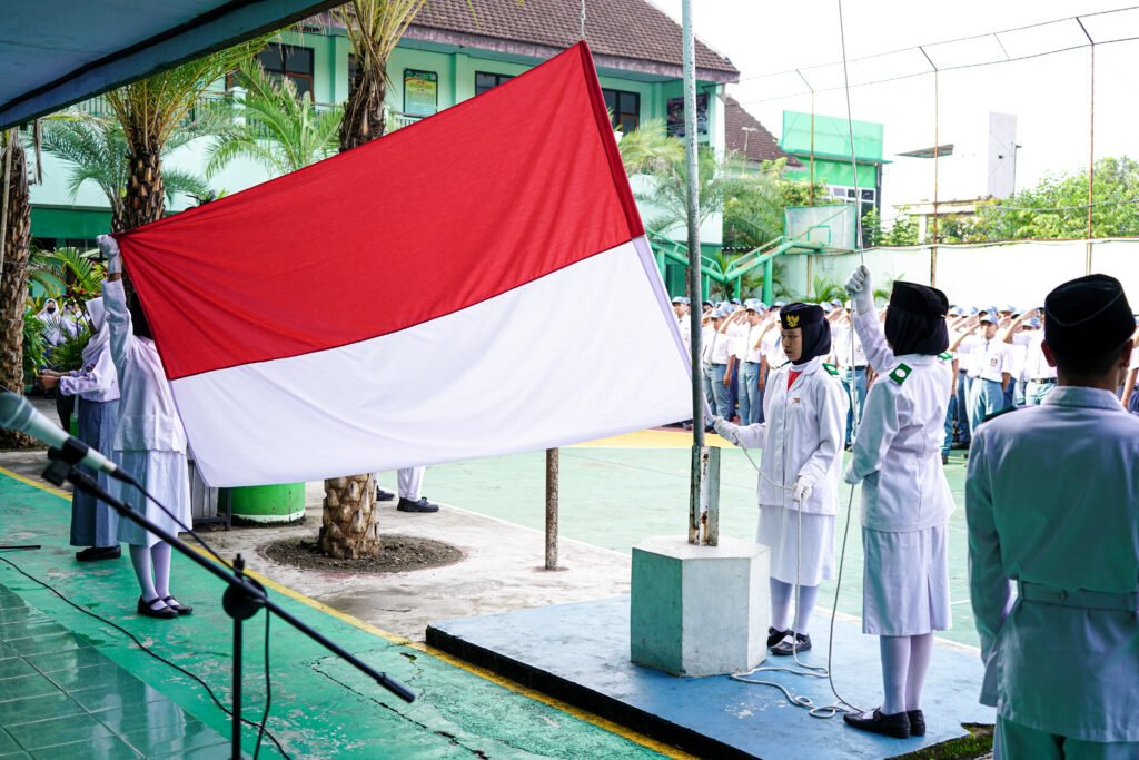 Suasana hening memenuhi lapangan saat lagu kebangsaan “Indonesia Raya” berkumandang. Para peserta upacara, dari yang termuda hingga yang tertua, berdiri tegak dengan penuh kebanggaan, sambil menatap bendera Merah Putih yang berkibar dengan gagahnya.