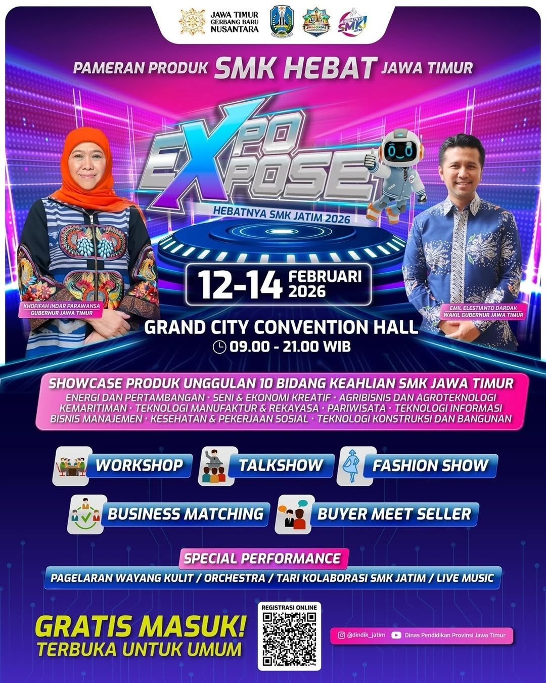 Expo yang diselenggarakan oleh Dinas Pendidikan Provinsi Jawa Timur ini menjadi wadah showcase produk unggulan dari 10 bidang keahlian SMK se-Jawa Timur. Ribuan pengunjung dari kalangan pelajar, dunia usaha dan industri, hingga masyarakat umum memadati area pameran untuk melihat inovasi karya siswa SMK.