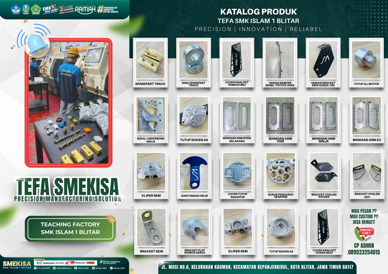 Pada kesempatan tersebut, SMK Islam 1 Blitar memamerkan produk-produk hasil Teaching Factory. Produk TEFA yang ditampilkan merupakan hasil karya siswa yang diproduksi dengan standar industri, mencerminkan kompetensi, kreativitas, serta kesiapan lulusan dalam menghadapi dunia kerja dan wirausaha.