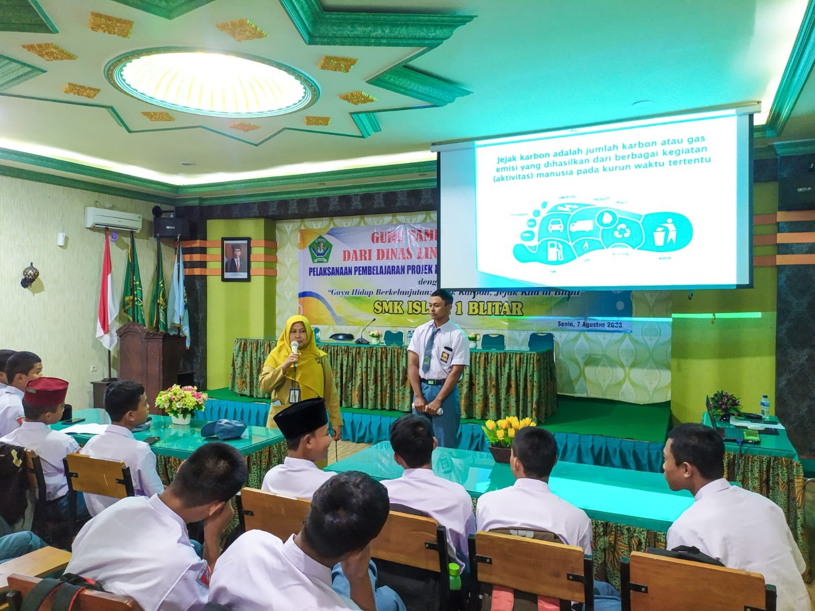 Blitar – Dalam rangka meningkatkan pemahaman dan kesadaran siswa terhadap isu lingkungan hidup, SMK Islam 1 Blitar menerima kunjungan dari seorang guru tamu yang berasal dari Dinas Lingkungan Hidup Kota Blitar. Guru tamu ini memberikan materi khusus tentang kepedulian lingkungan kepada siswa-siswa SMK Islam 1 Blitar di Aula Gedung A. Senin, 7/8/2023.