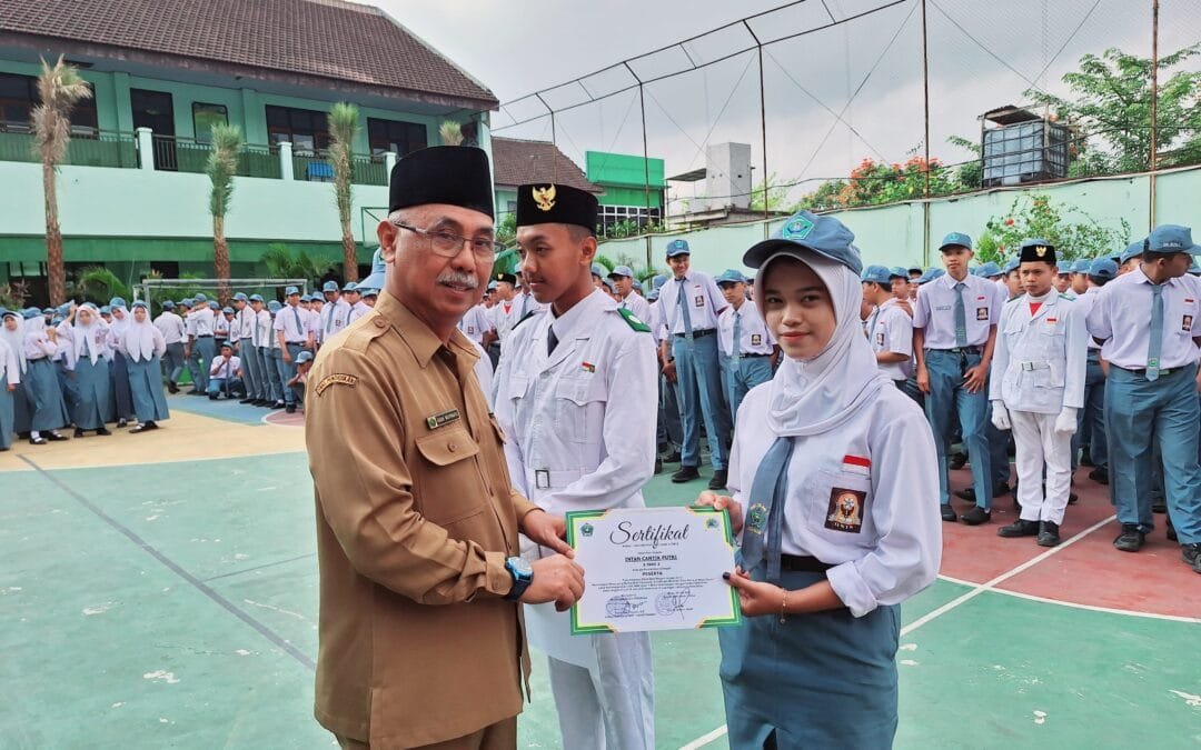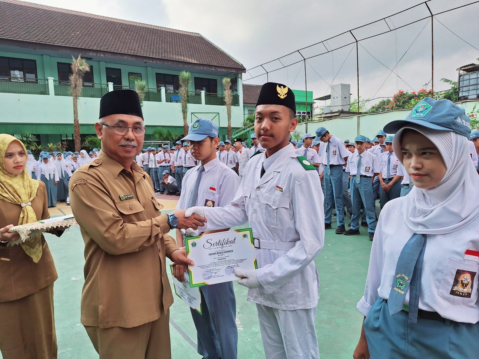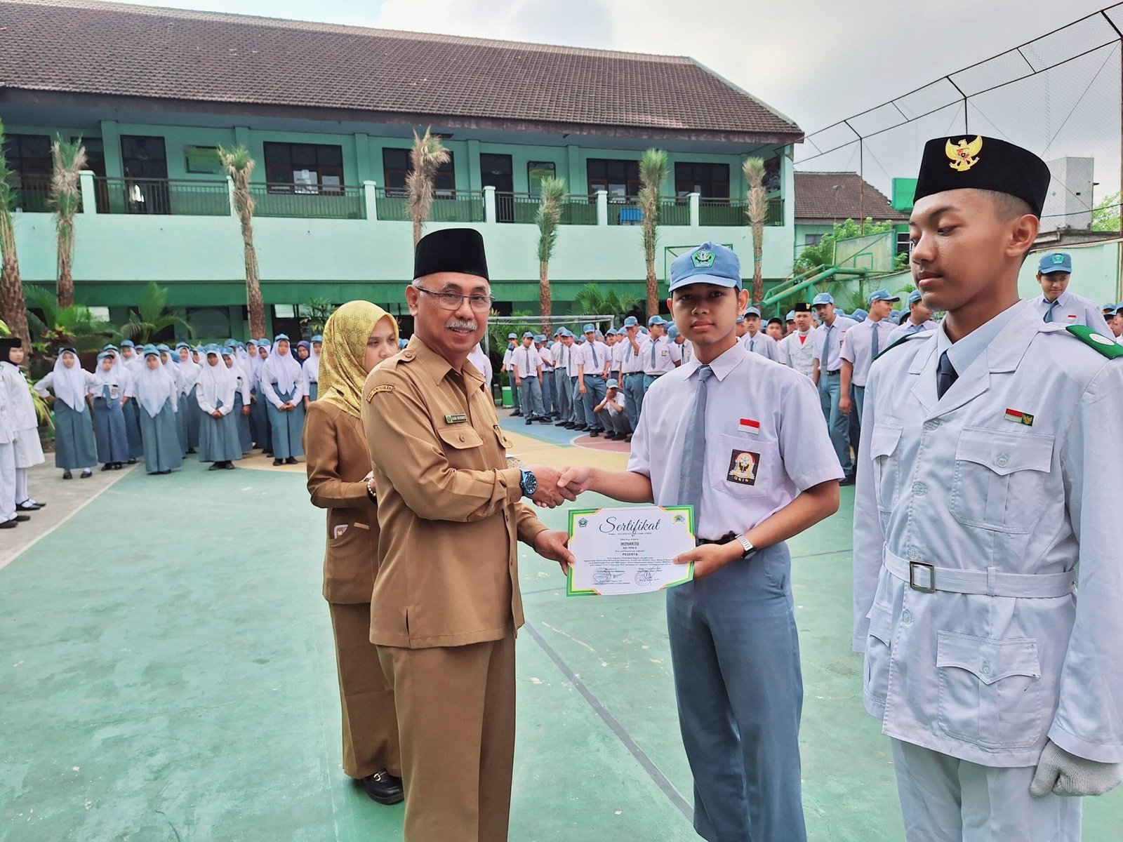 Blitar – SMK Islam 1 Blitar menggelar upacara bendera yang istimewa hari ini, dengan momen penyerahan Sertifikat Bela Negara secara simbolis kepada siswa kelas X, XI, dan XII. Upacara tersebut dilaksanakan di halaman depan sekolah dan dihadiri oleh siswa, guru, serta ribuan siswa yang turut bangga menyaksikan prestasi teman mereka. Senin, 11 September 2023.